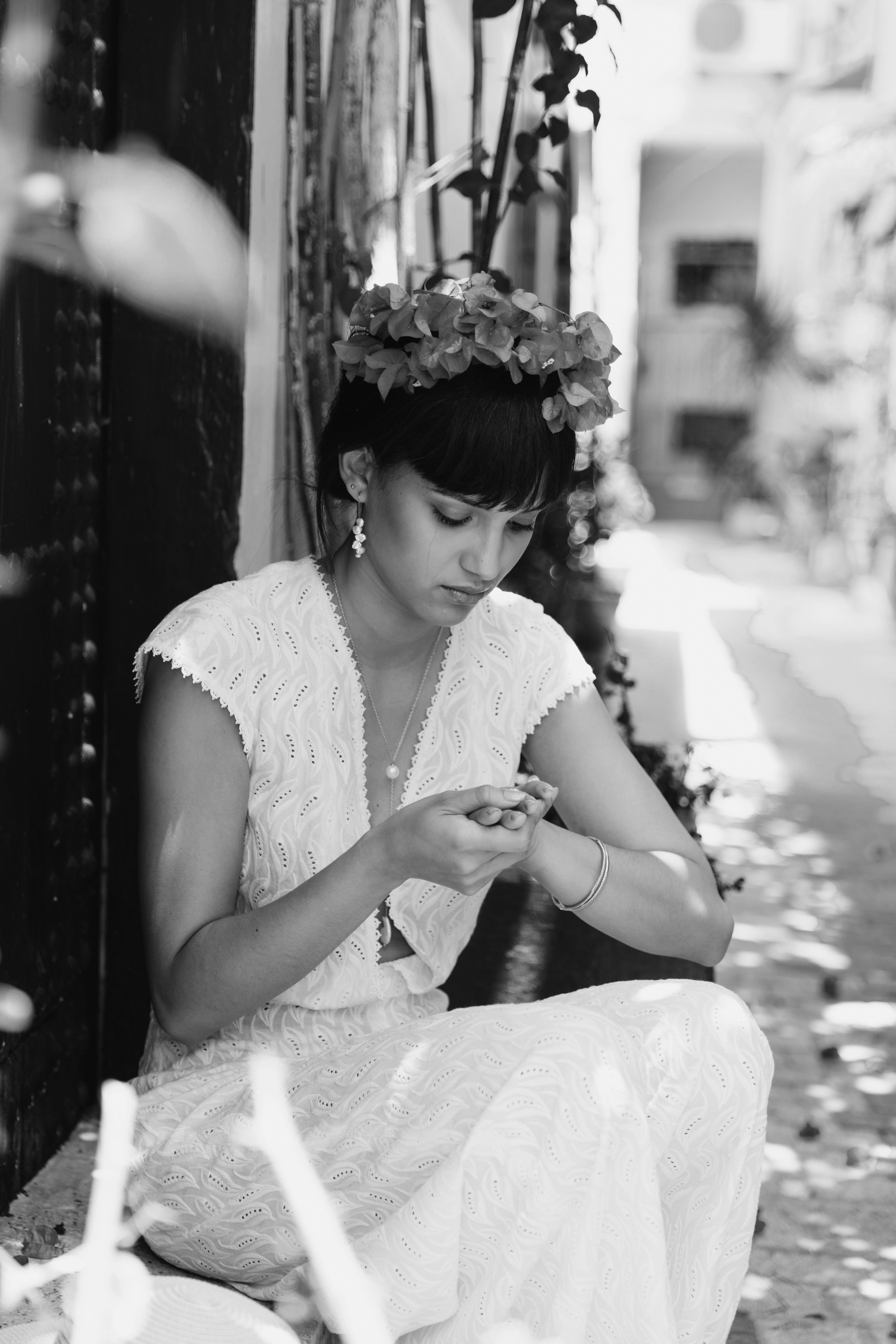 Keyhole open back attached with two handmade silk pompoms “choucha”.
