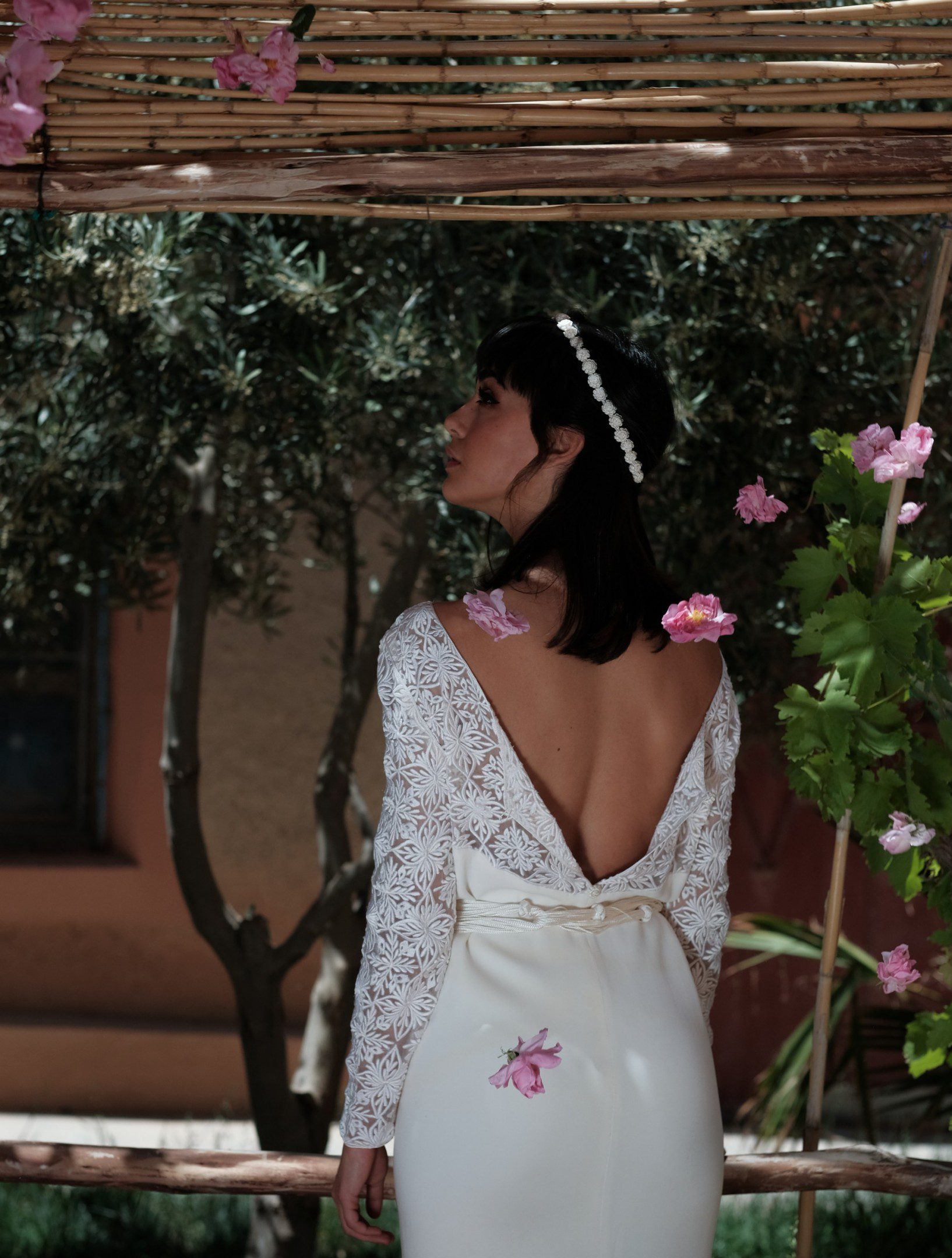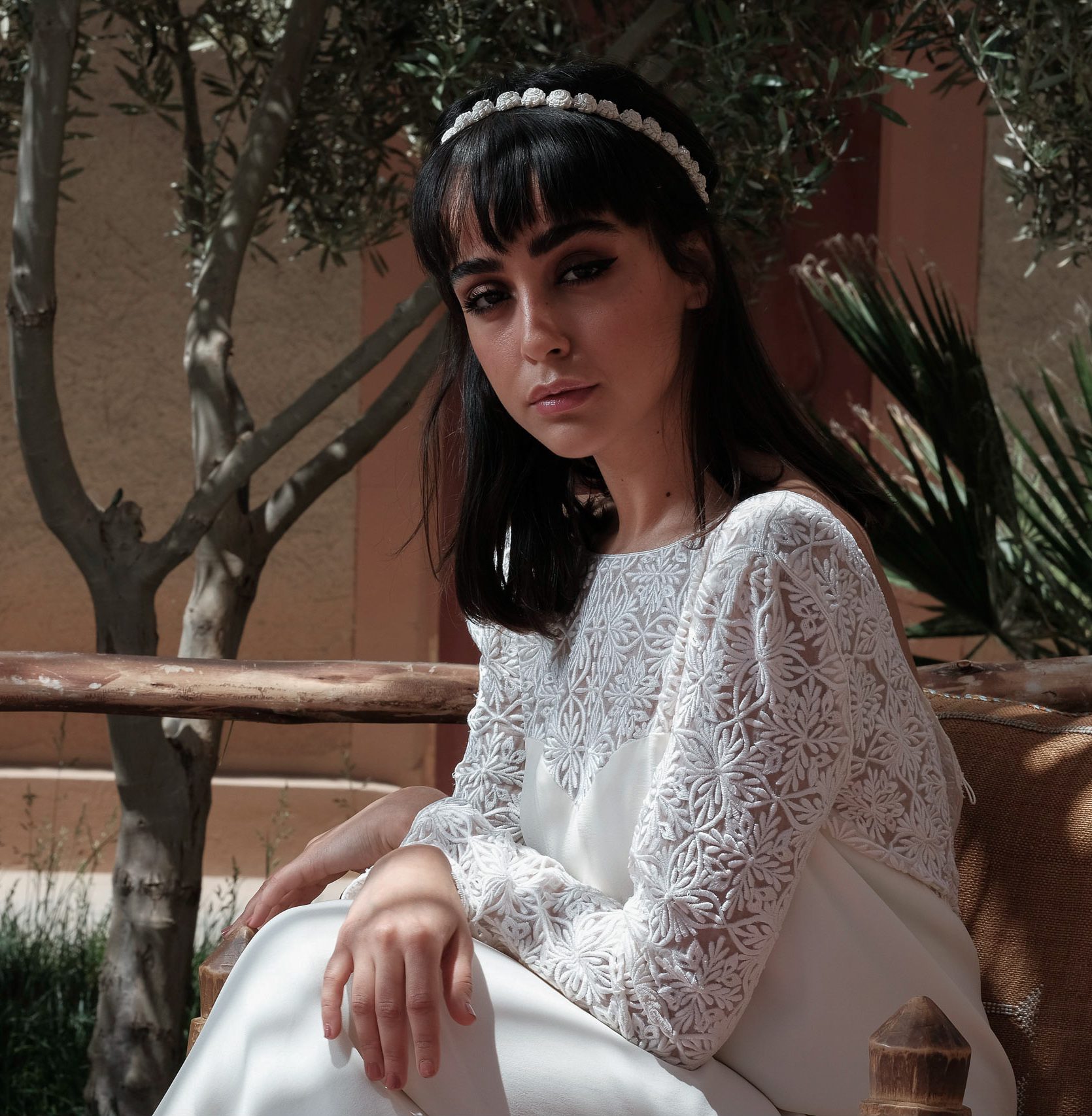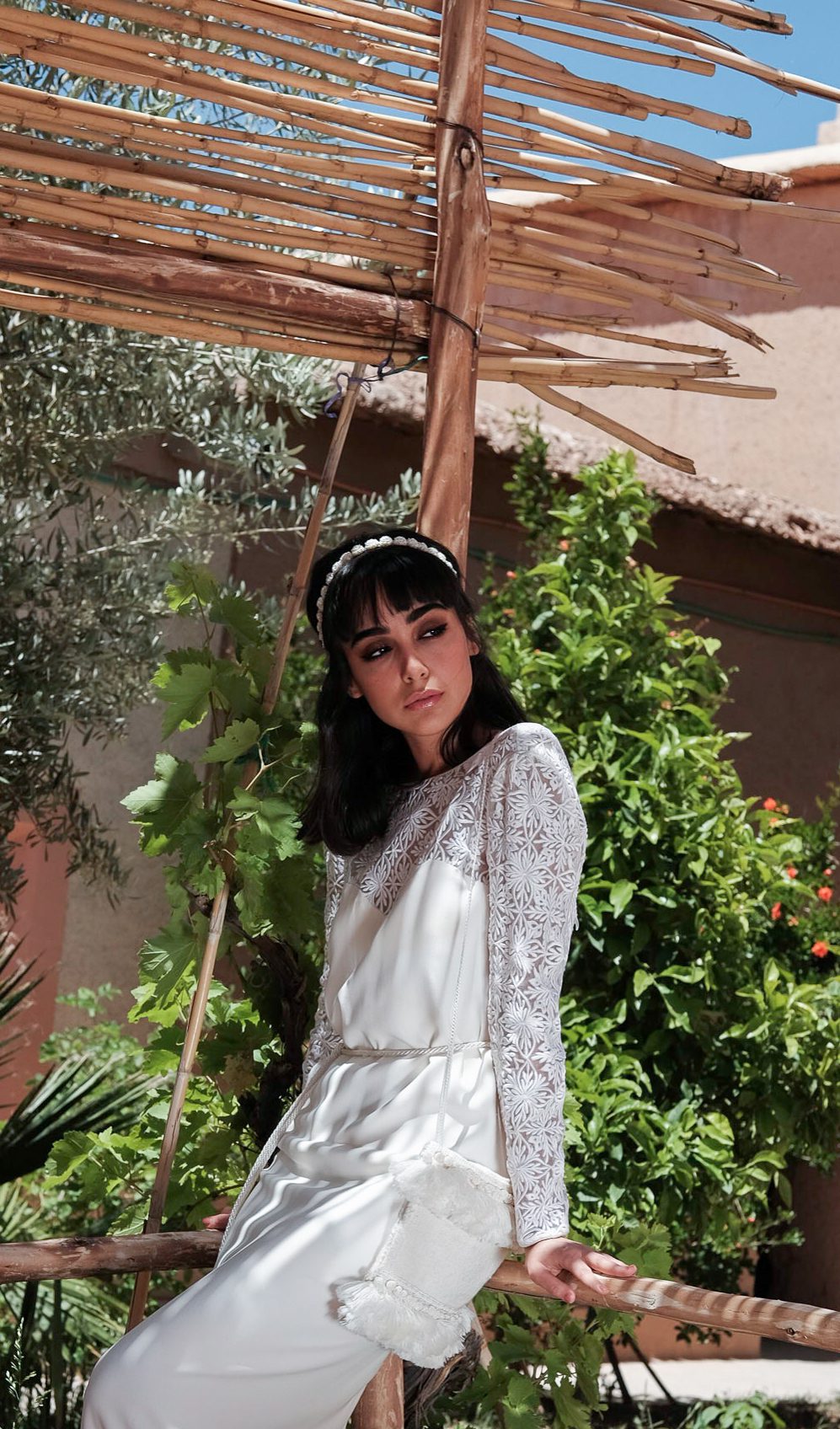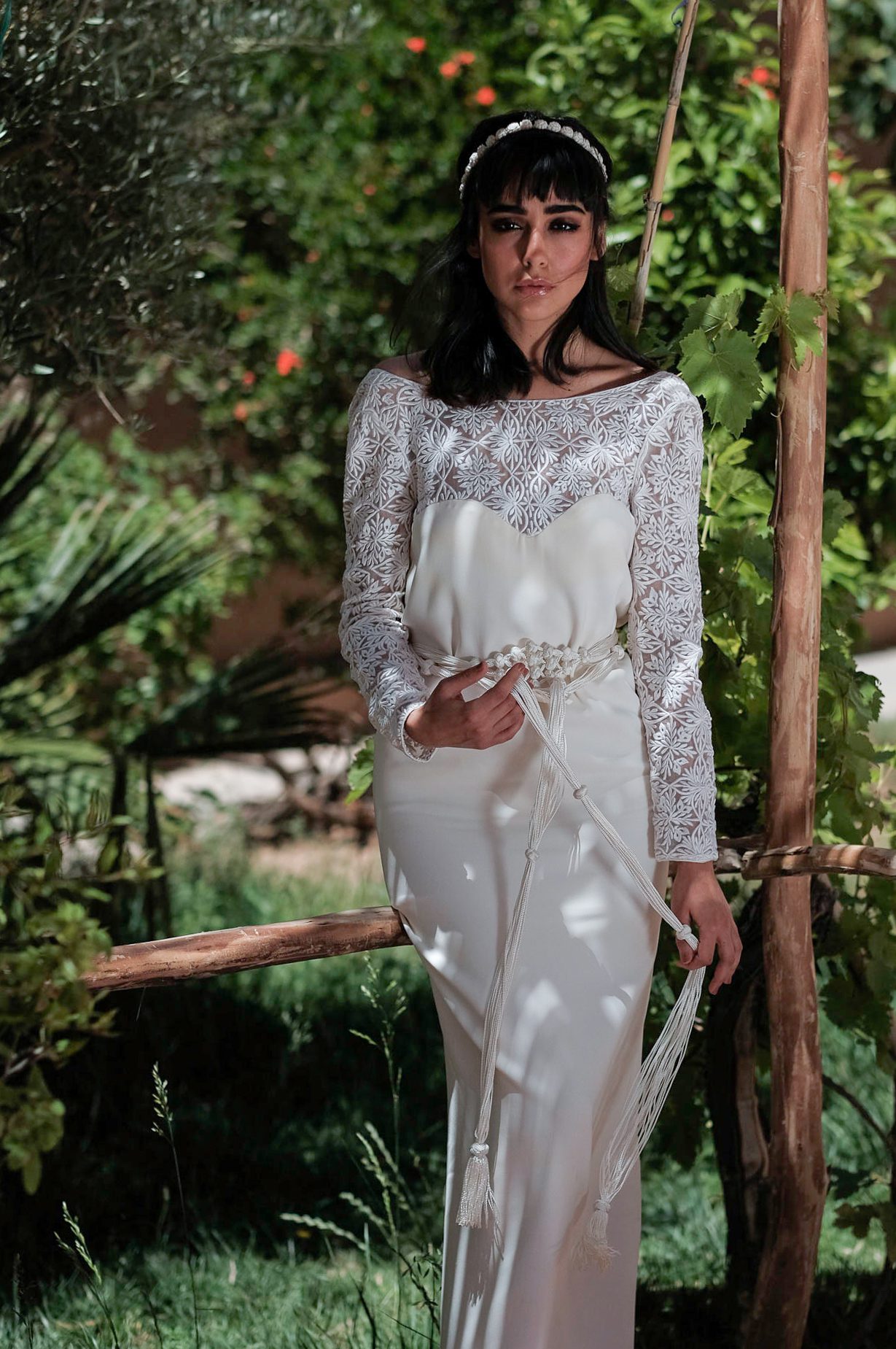 100% silk crepe dress with handmade floral silk embroideries from Rabat/tarz Rbati on silk organza and braided silk cords/keitane on seams