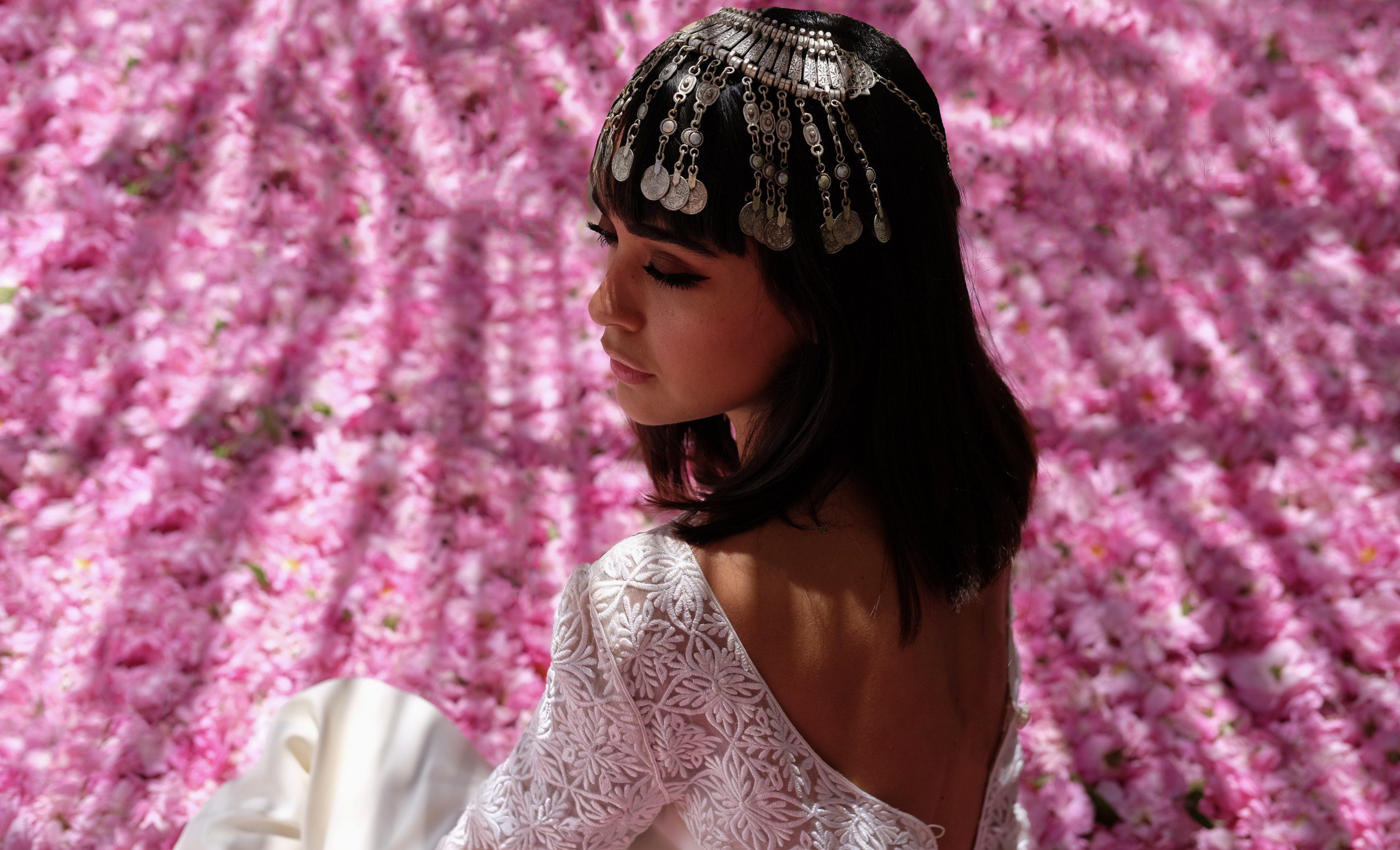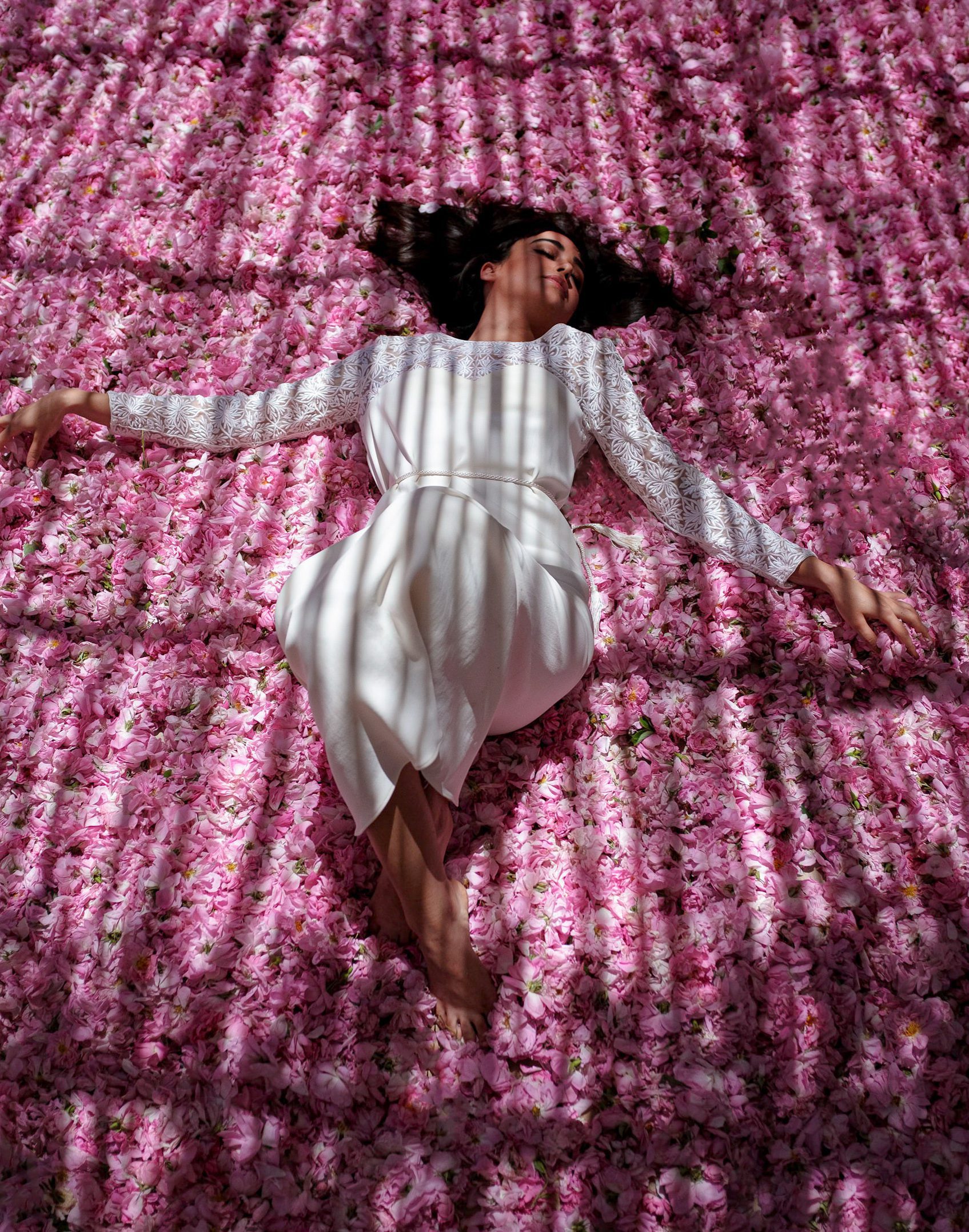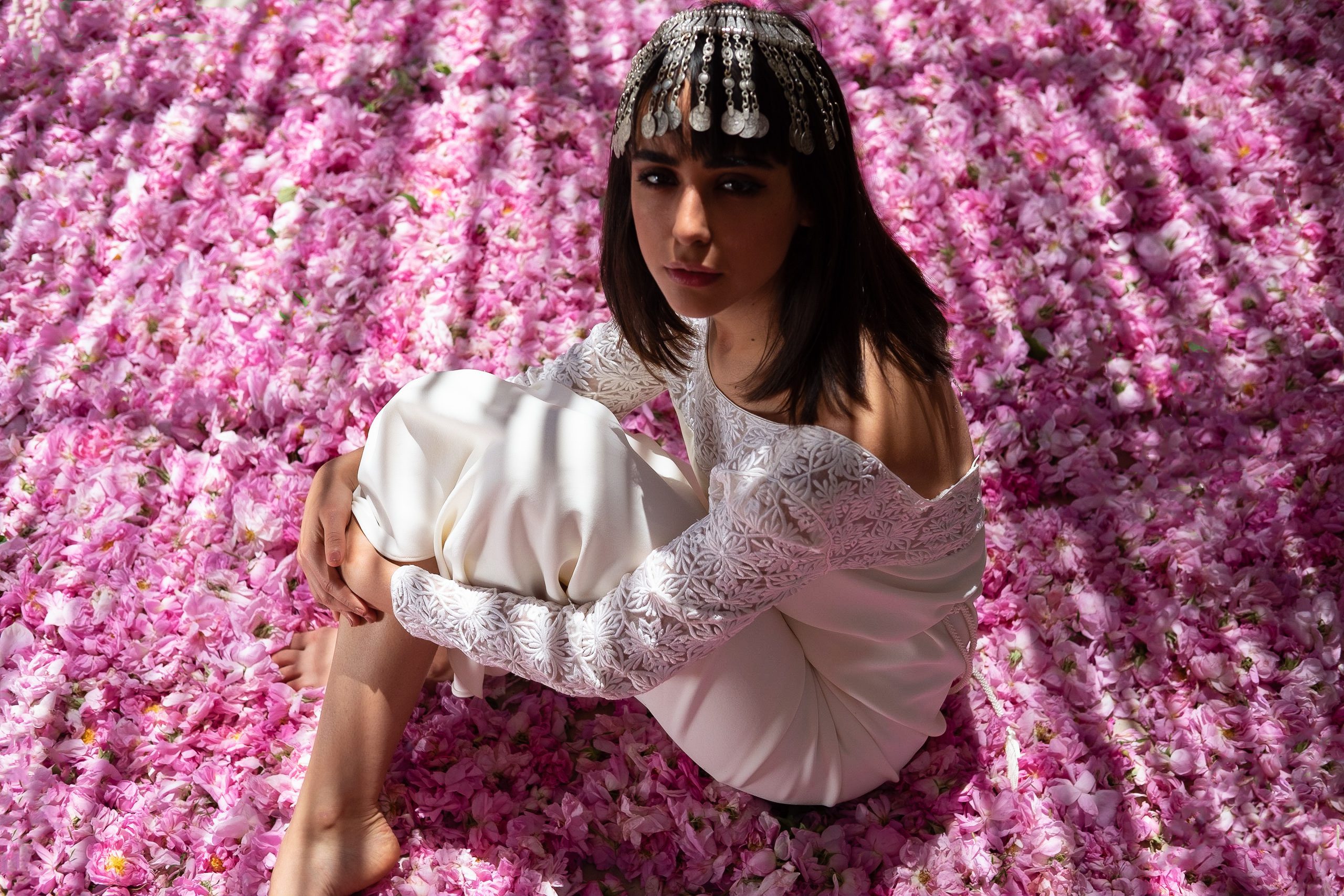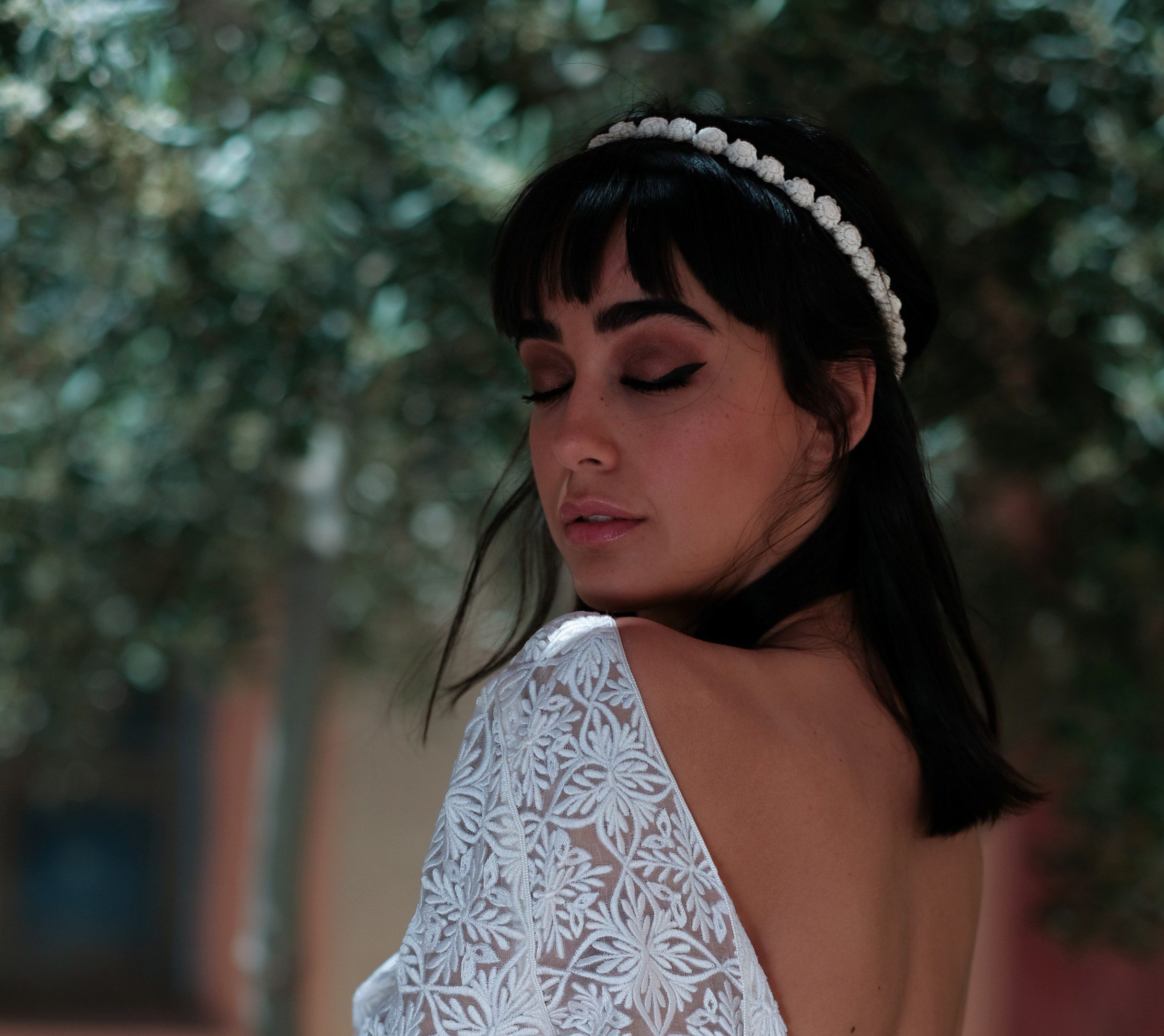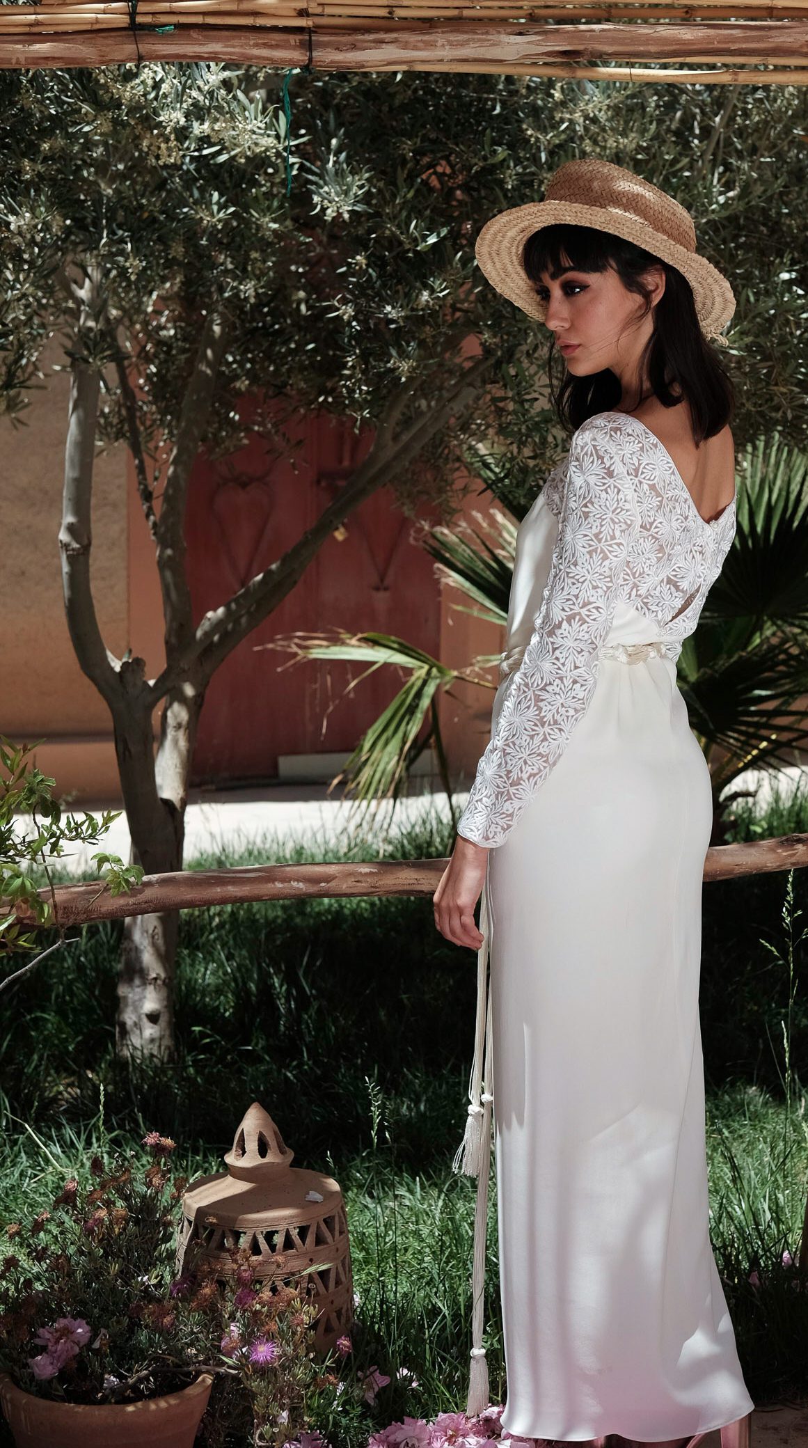 100% silk crepe dress with handmade floral silk embroideries from Rabat/tarz Rbati on silk organza and braided silk cords/keitane on seams