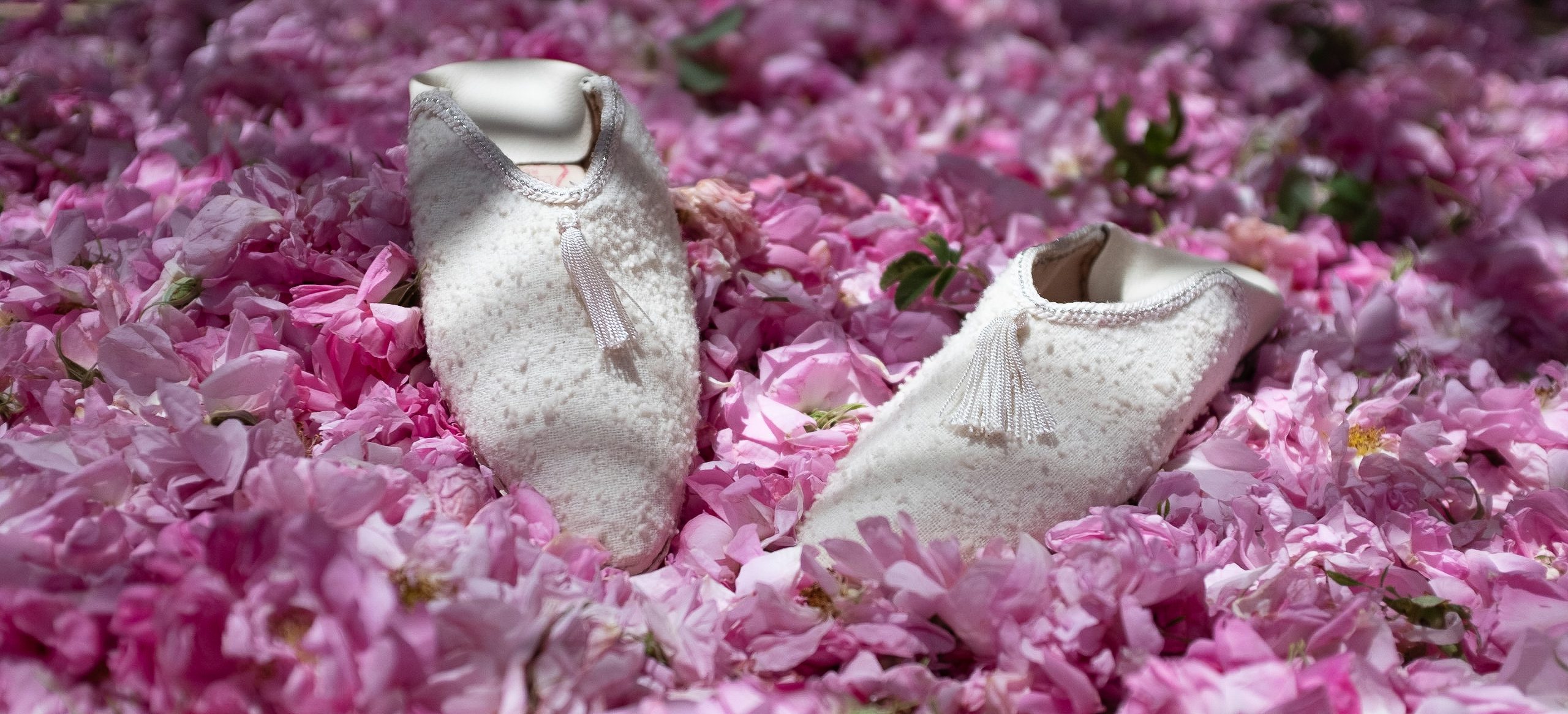 100% wool handmade babouches with fine silk braid trimming/sfifa dfira and braided silk cords pompoms/choucha